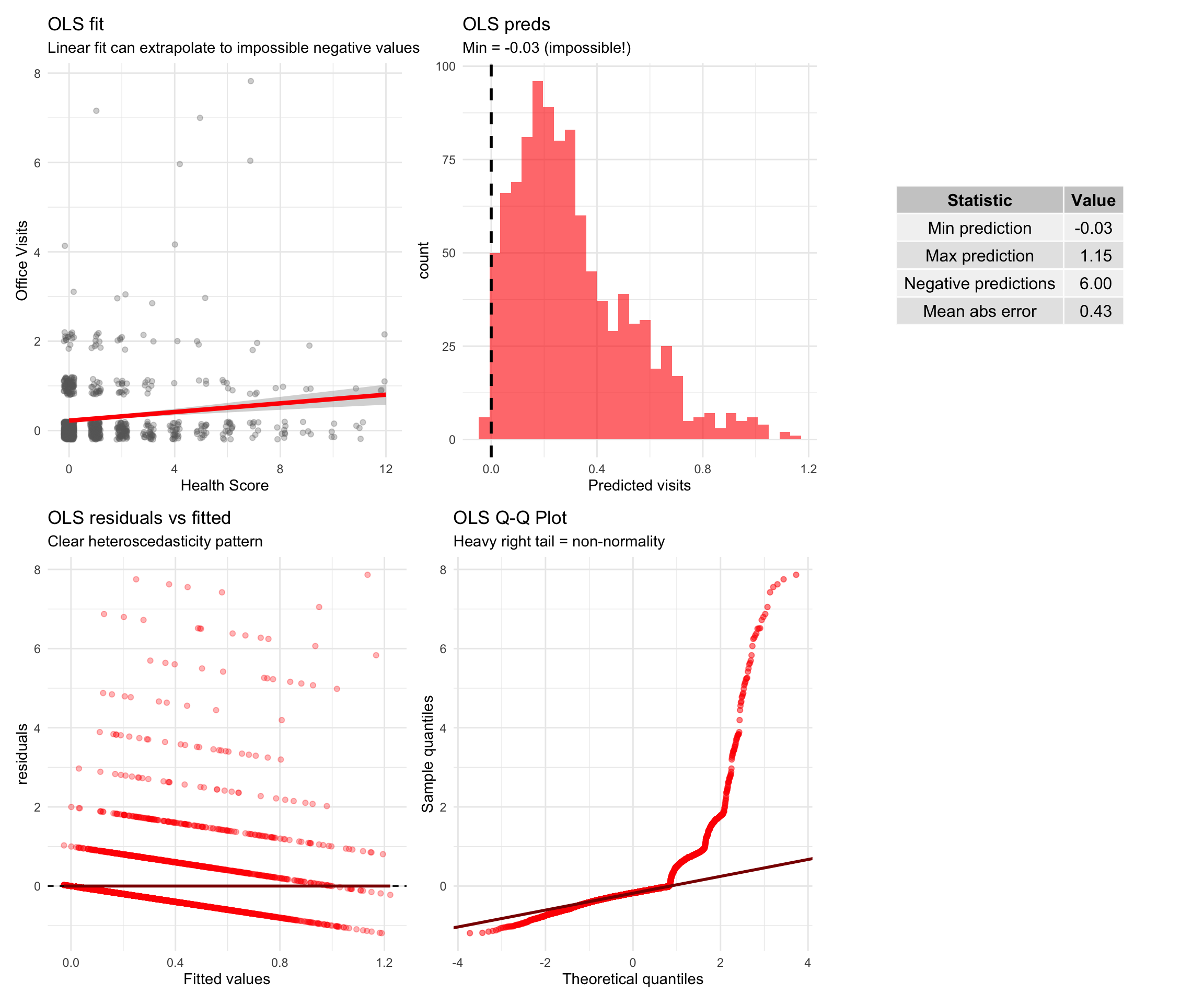 **Lower AIC indicates better fit**: Negative Binomial has AIC = `{r} round(AIC(nb_model), 1)` vs Poisson AIC = `{r} round(AIC(poisson_model), 1)`.